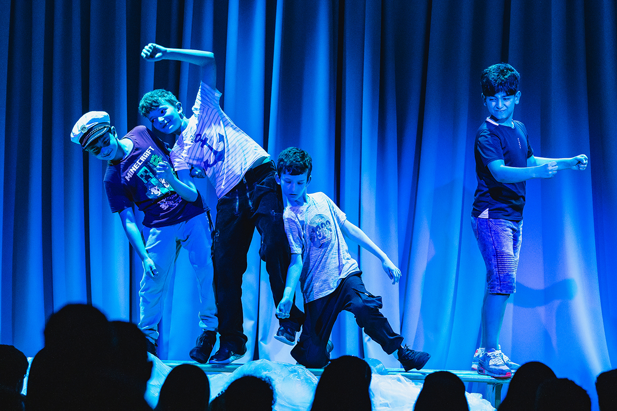 In einer abwechslungsreichen Geschichte erzählen die Schüler:innen schauspielernd, trommelnd, tanzend und singend über die schönste, aber auch stressigste Zeit im Jahr – über das Reisen.